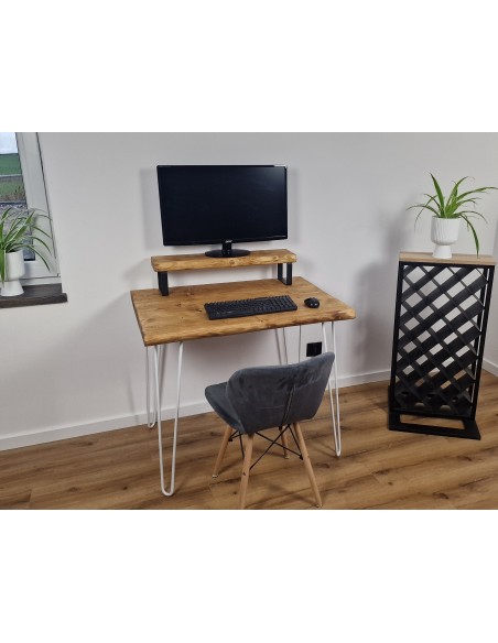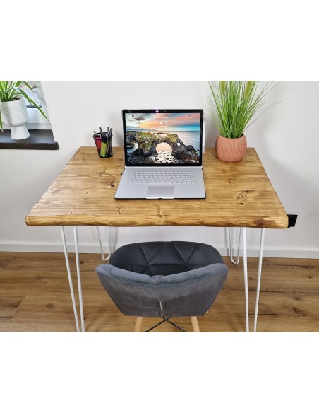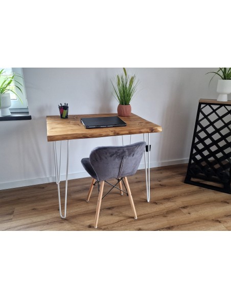 Live-Edge-Rustikaler Schreibtisch mit weißen Hairpin-Beinen