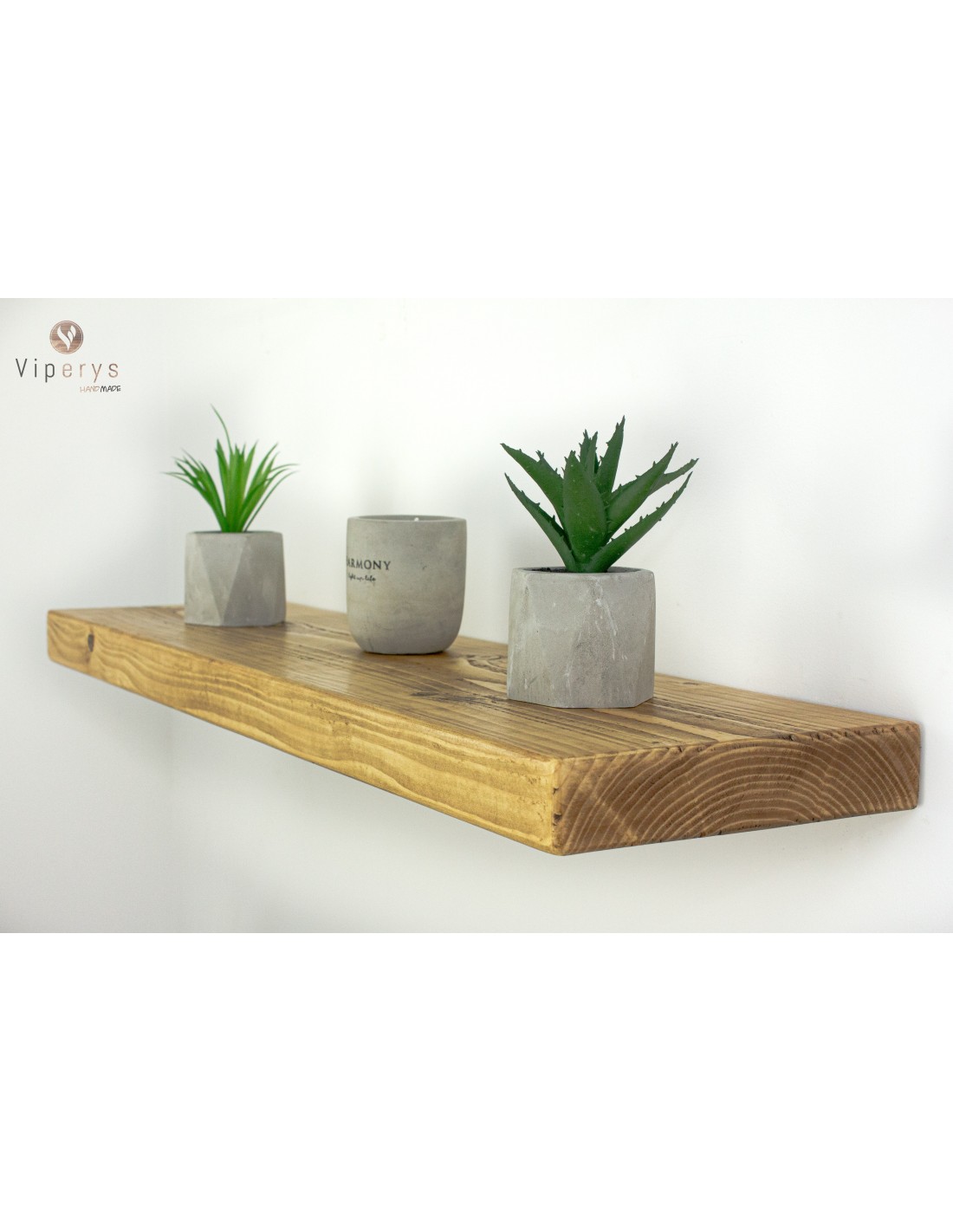 This rustic wall shelf with hidden bracket is handmade from solid reclaimed pine. Each piece is hand-cut, sanded, and finished with natural beeswax – smooth finish and rounded edges ensure top quality.