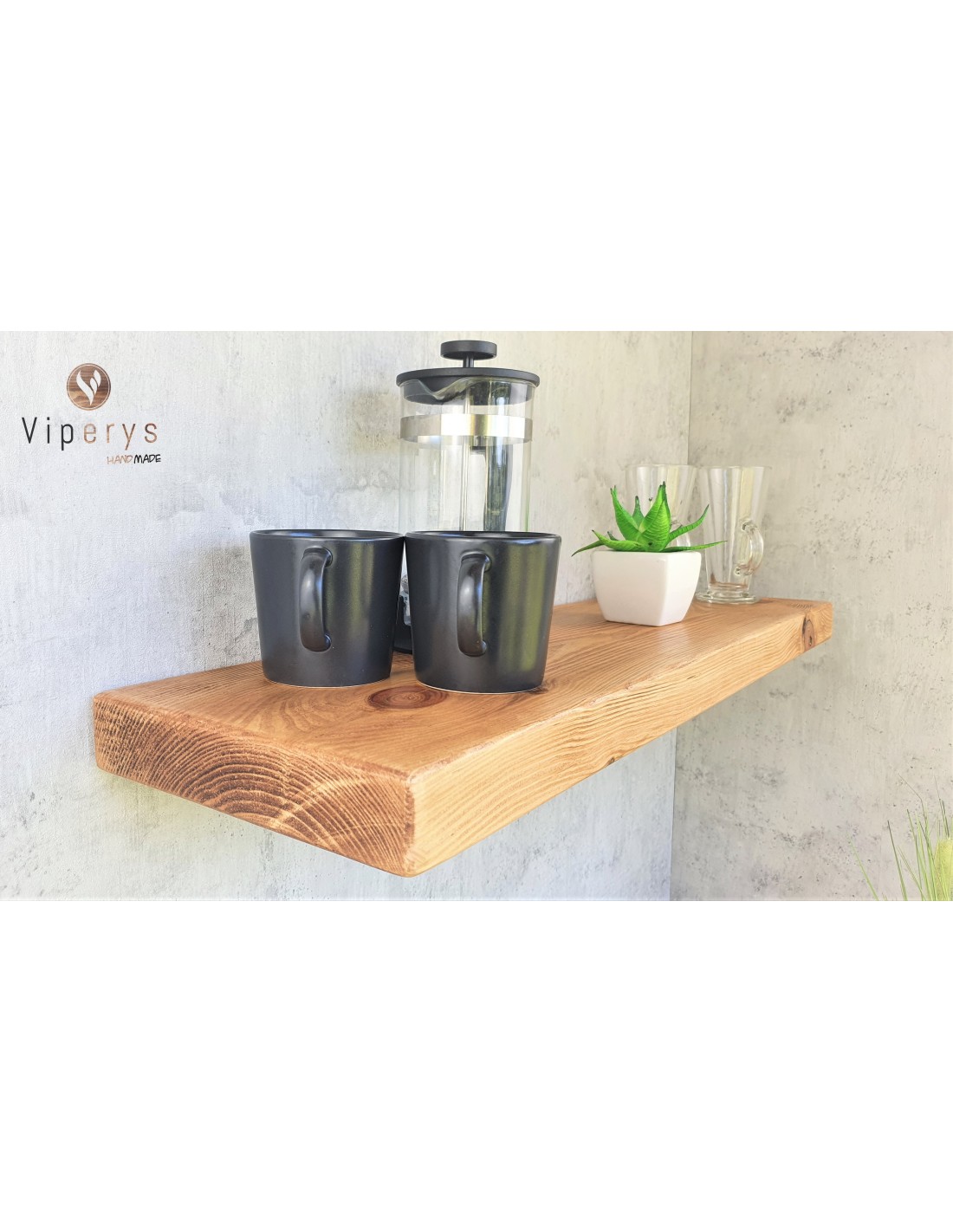 Nasza rustykalna półka wisząca jest wyposażona w ukryty wspornik i wykonana z litego drewna sosnowego. Każda półka jest piłowana, szlifowana i wykańczana naturalnym woskiem pszczelim – dwie warstwy zapewniają gładkość i eleganckie, zaokrąglone krawędzie.