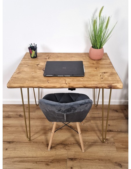 Rustykalne biurko Live edge ze Złotymi nogami typu Hairpin